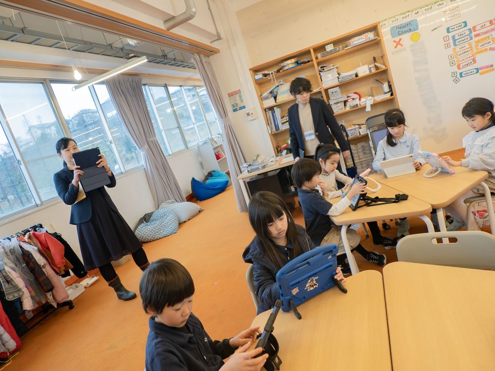 本校施設の概要や探究学習の取り組み、英語学習の内容について中心にご説明させていただきました。その後、実際に子どもたちの様子を見学していただき、学校の教育活動がどのように進行しているのかを直接感じていただきました。