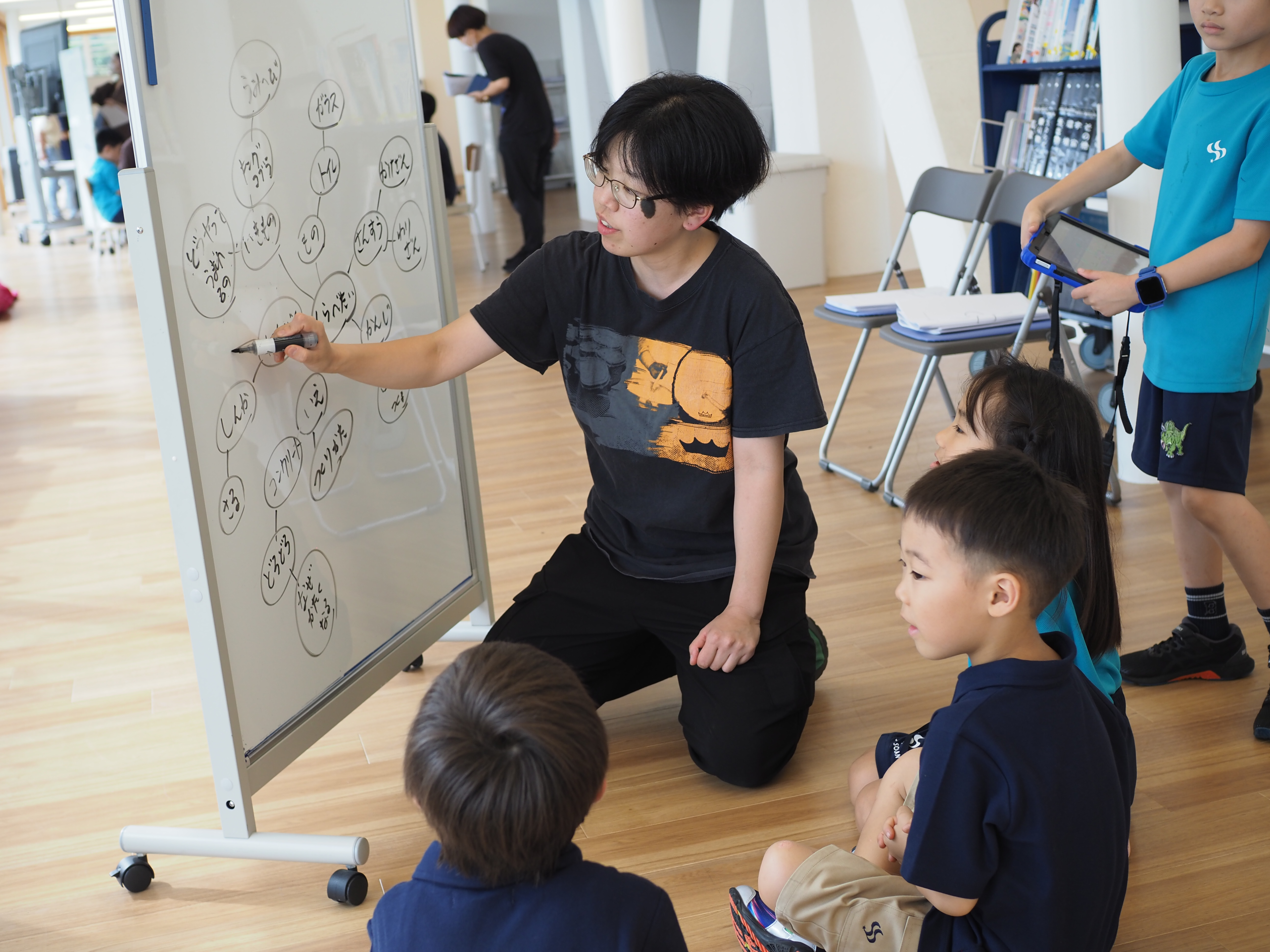 そのために、第5回の研究発表会では、5つの学習様式に沿った1〜7年生すべての学年の授業を公開します。また、個人探究は授業ではなく、1年から7年までの子どものポスター発表を実施します。加えて、初年度の研究会からSOLANの実践を見守ってきてくださった保護者サポーター、外部実践者とともに、SOLANの実践について語り合う「座談会」を行います。