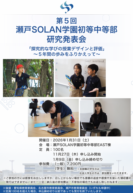 第5回 瀬戸SOLAN学園初等中等部研究発表会