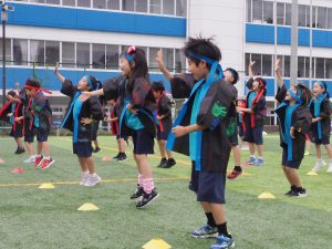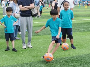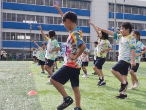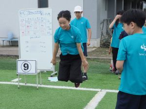 さらに、校内には14カ所の自由競技ブースが登場!そのうち10カ所は中等部の生徒たちが中心となって運営し、フェスティバルを大いに盛り上げてくれました。 サッカーシュートチャレンジ、フラフープチャレンジ、輪投げ、15〜20m走など、子どもたちはブースを駆け巡りながら思いきり楽しんでいました。