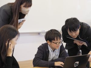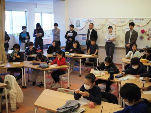 また、文部科学省・国立教育政策研究所、阿久比中学校のみなさまにも、探究学習の授業の様子や、利島村から交換留学で来ている子どもたちの学校生活を視察いただきました。
