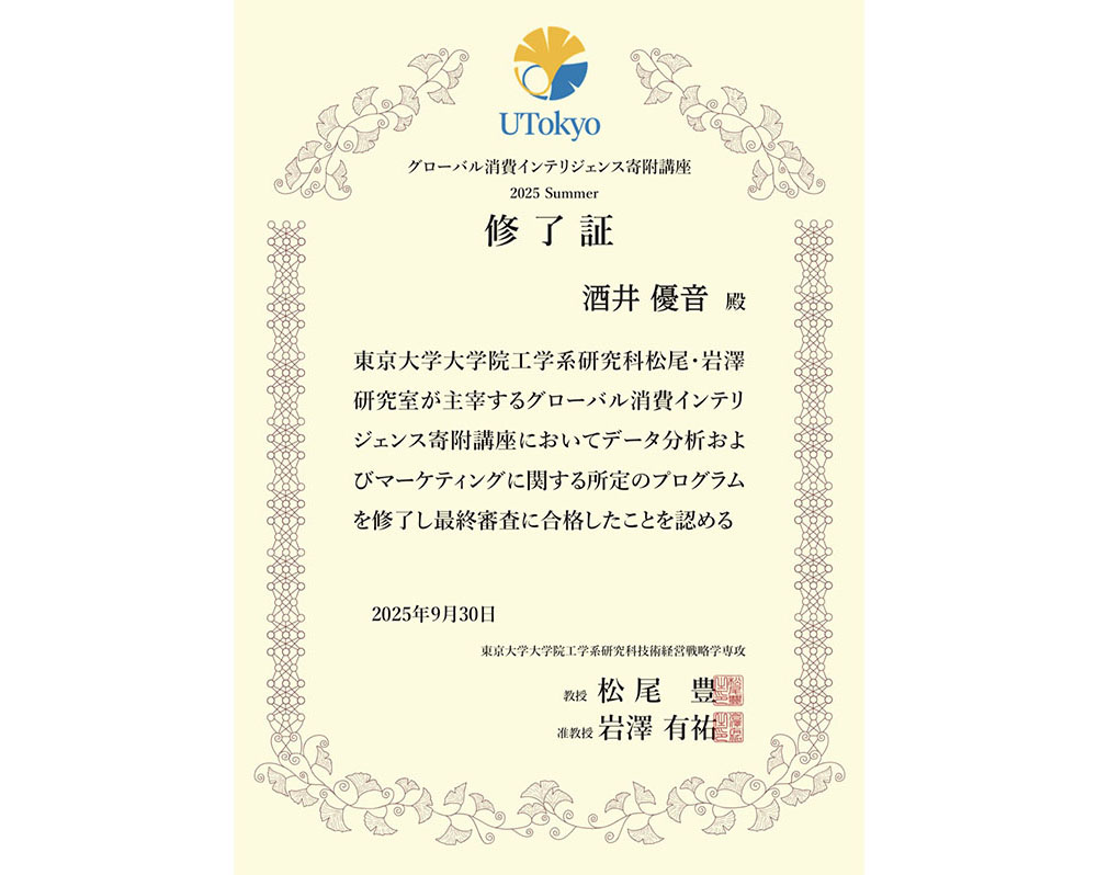 東京大学大学院工学系研究科松尾•岩澤研究室主宰グローバル消費インテリジェンス寄付講座