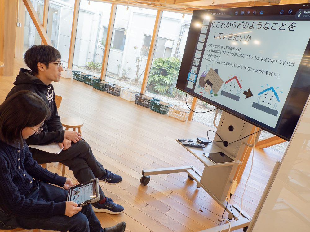 <まとめる>の活動を始めた子どもたちは、iPadでスライド作成をしたり、集めた情報を整理したりしていました。この日はYogiboがたくさん置いてあるソクラテスラボで活動をする子どもたちがたくさんいました。<まとめる>の活動では色々と思考をめぐらせながら活動します。緊張感をほぐしてくれるYogiboは最高の道具です。前回の研究発表会での活動の際にお客様からいただいたアドバイスを取り入れたり、友達同士でスライドを見せ合ったり、それぞれのペースでまとめを進めていました。